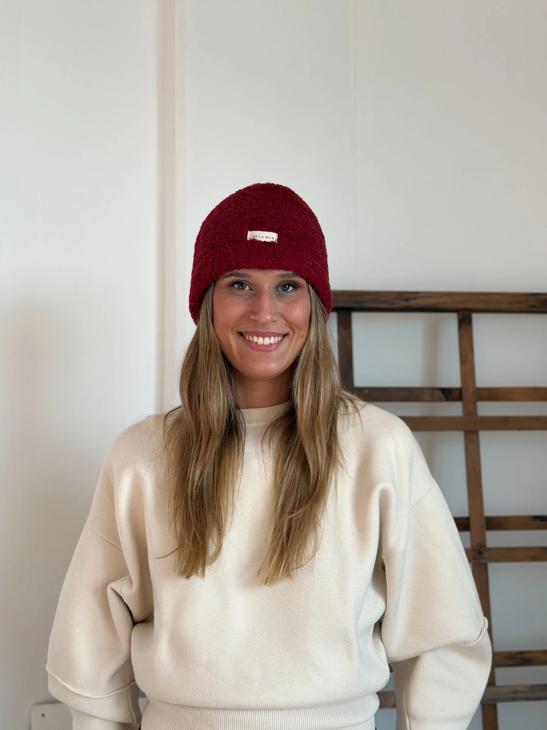 Este gorro, confeccionado en tejido grueso de borreguito, ofrece una suavidad excepcional y una calidez perfecta para los días más fríos. Su tono granate añade un toque elegante y moderno a cualquier look invernal.