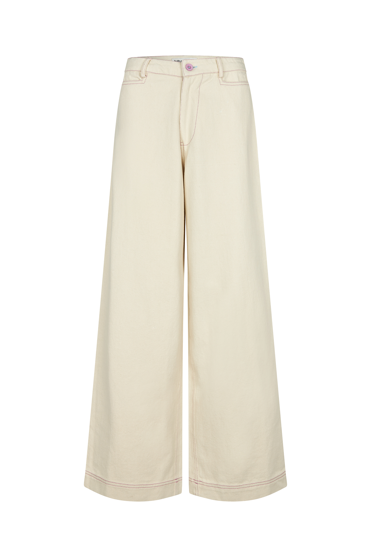 Los pantalones FloridaLL están confeccionados en algodón 100 % suave y presentan un ajuste relajado de pierna ancha con cintura alta. Destacan por sus costuras en contraste púrpura y el bordado decorativo del bolsillo trasero, que aportan un toque distintivo. Un diseño cómodo y versátil, ideal para looks casuales y urbanos. Combínalos con la chaqueta AprilLL para un conjunto coordinado.
