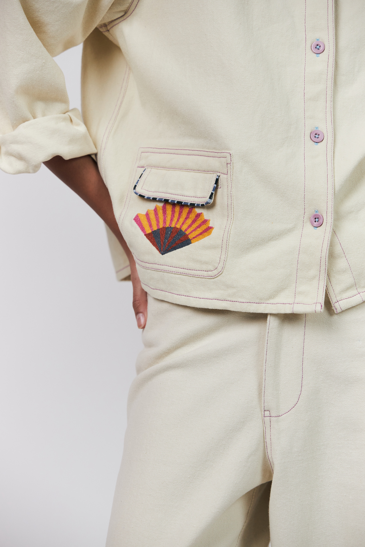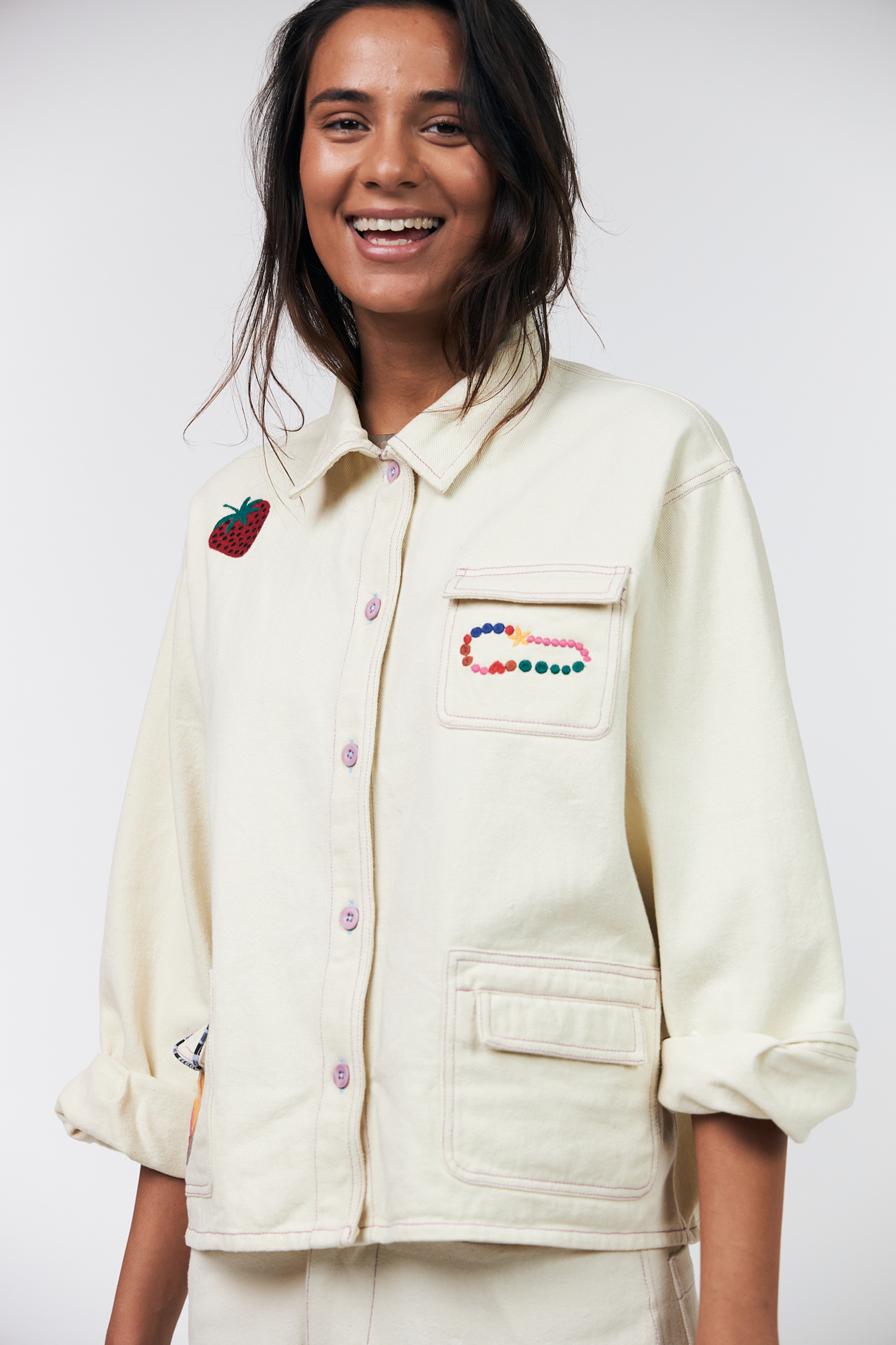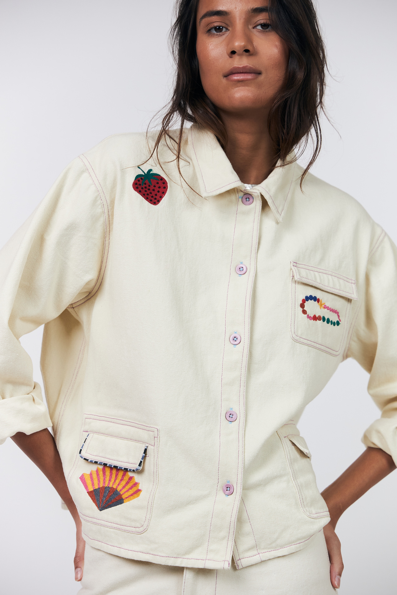 La chaqueta AprilLL está confeccionada en algodón 100 % suave y presenta un ajuste relajado de corte recto. Las costuras en contraste púrpura y los detalles bordados en el pecho y los bolsillos aportan un carácter único y lleno de personalidad, reflejo del universo creativo de Lollys Laundry. Un diseño versátil y cómodo que completa el look junto a los pantalones FloridaLL a juego.