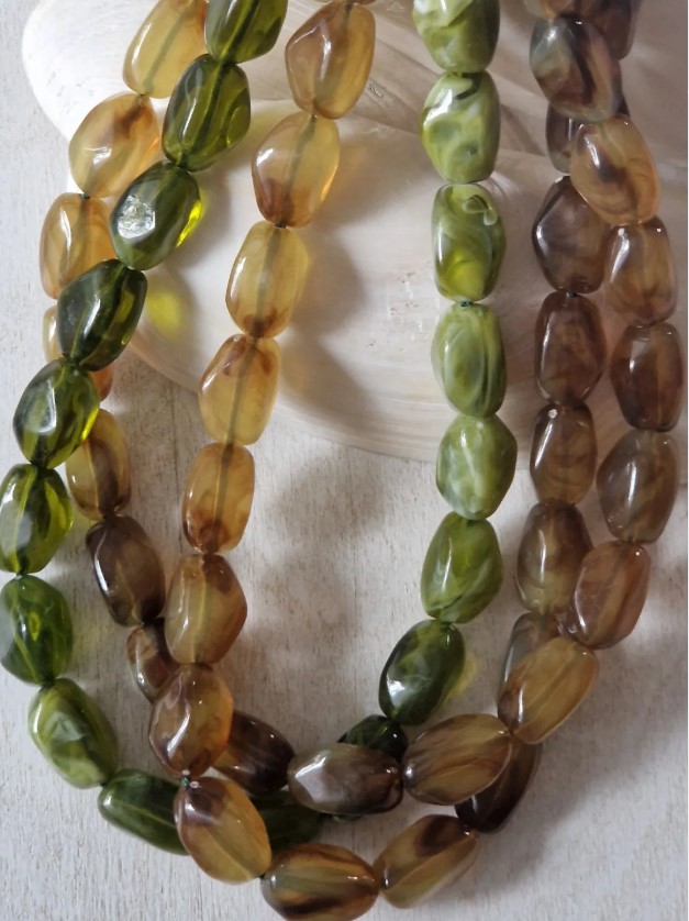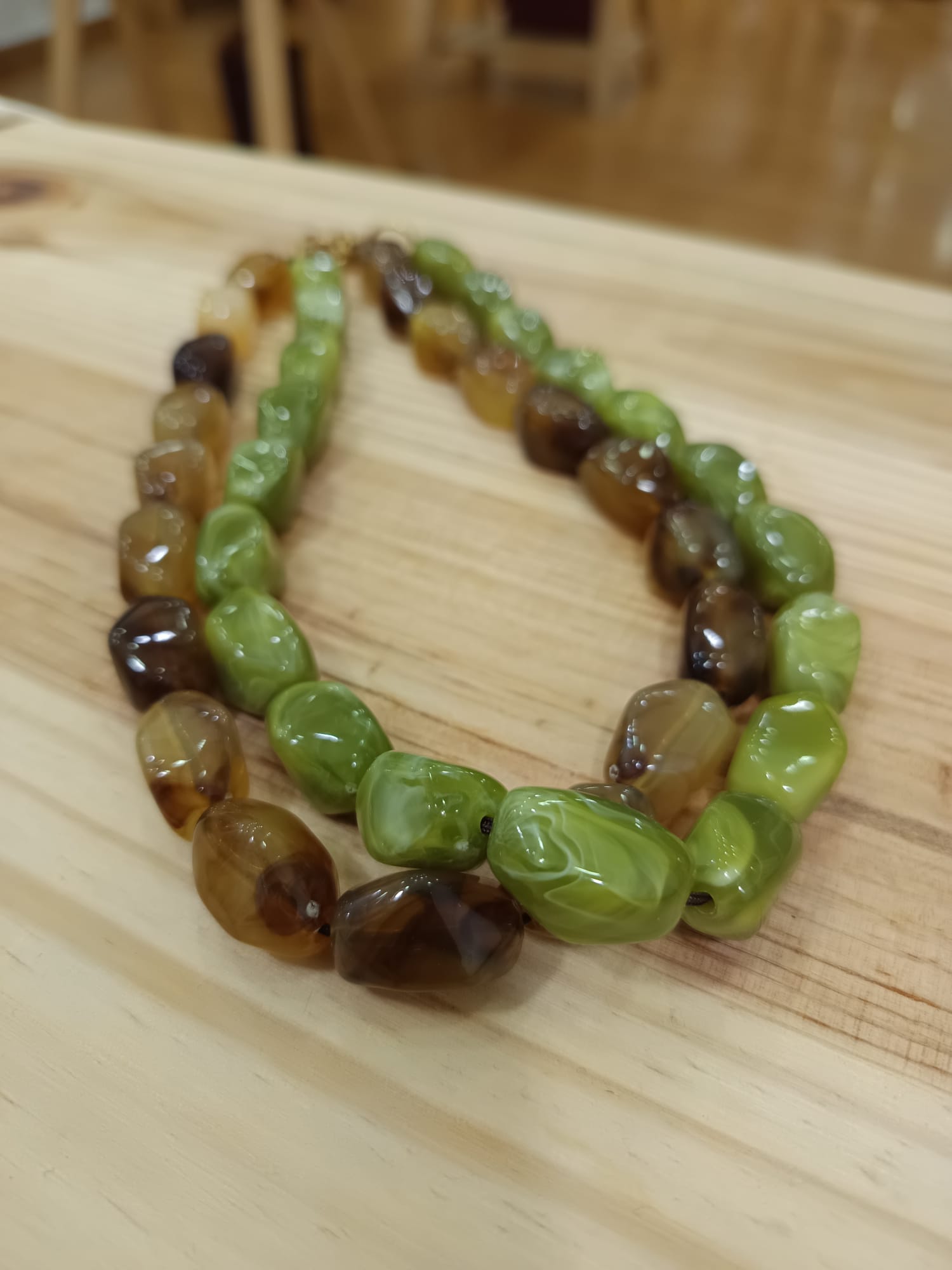 Collar doble de acrílicro en verde oliva y ámbar y acero