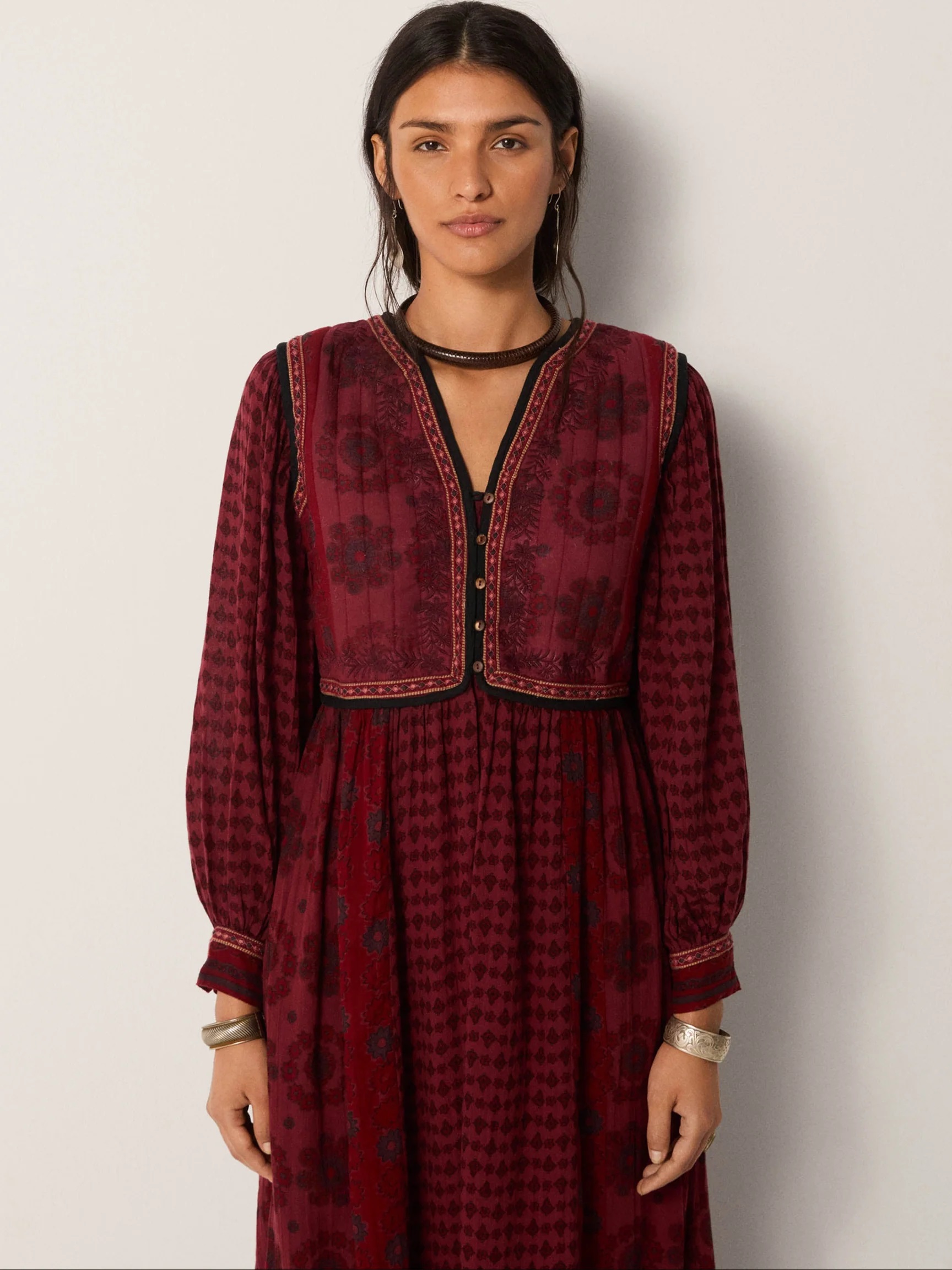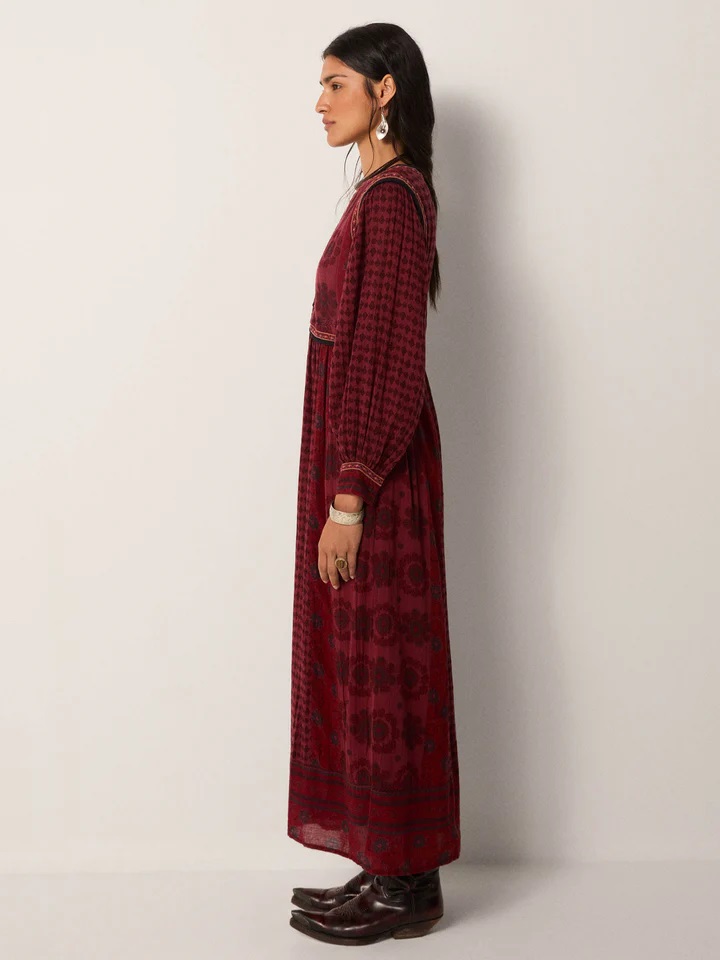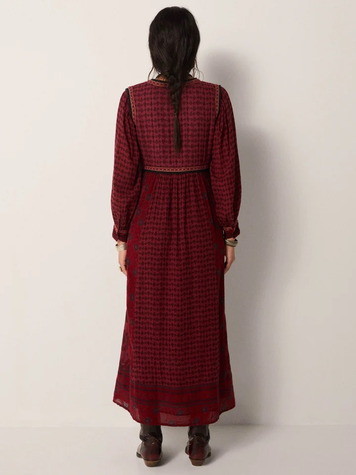 El tono burdeos, profundo y matizado, aporta una sensación acogedora, especialmente evocadora en la luz del atardecer.