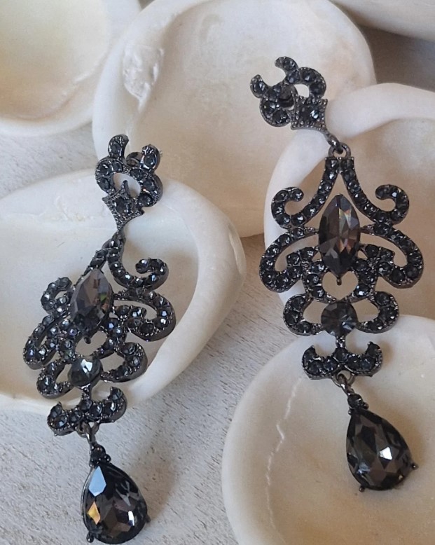 Estos pendientes exquisitos presentan un diseño toque de brillo sutil gracias a los cristales negros que decoran cada hoja. El diseño elegante y sofisticado hace de estos pendientes una opción perfecta para complementar cualquier look de noche o para ocasiones especiales. La estructura fluida de las hojas aporta un aire de frescura y movimiento, mientras que el contraste entre el dorado y los cristales oscuros les otorgan un toque de glamour y distinción. Un accesorio que seguramente llamará la atención.