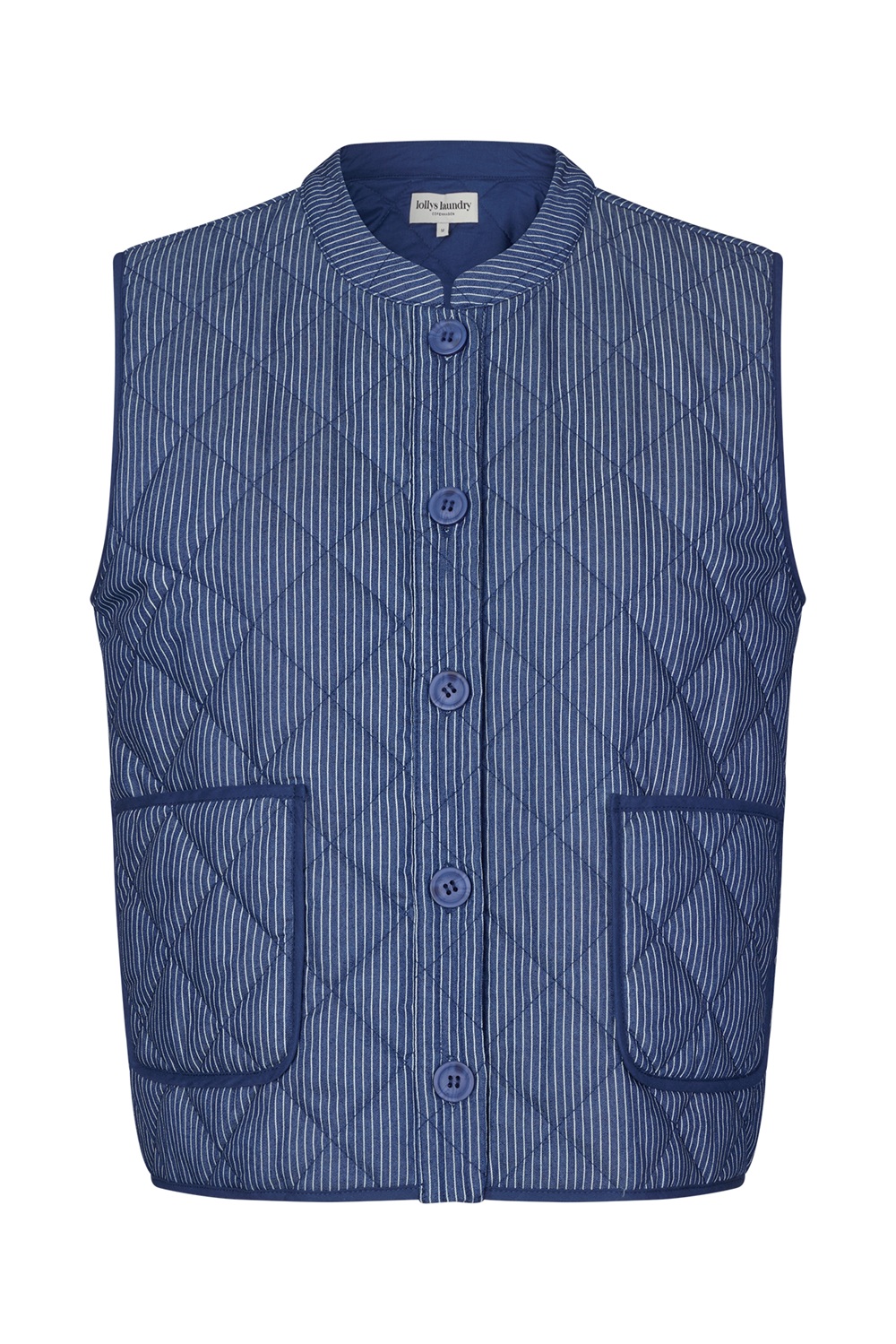 Azul oscuro con rayas estrechas y botones azules a juego