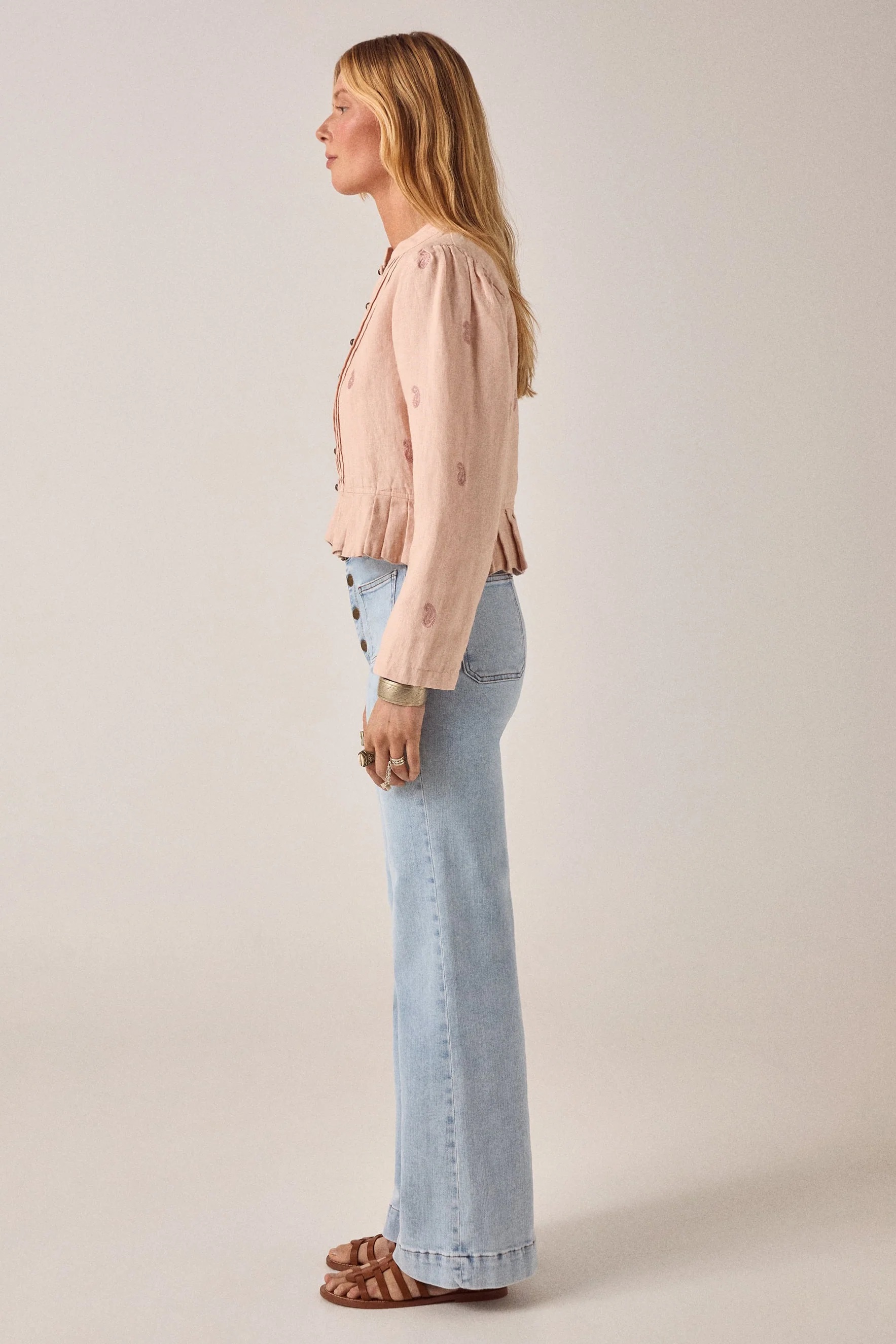 La Edgard Jacket Degas Antique Blush de Maison Hotel es una prenda que combina delicadeza, arte y estilo bohemio en una silueta sofisticada. Su tono “antique blush”, un rosa empolvado suave, aporta feminidad y elegancia, convirtiéndola en una pieza ideal para elevar cualquier look.