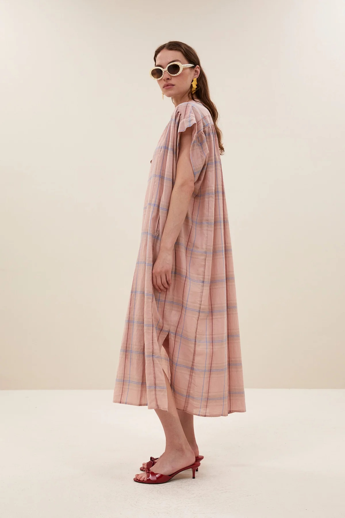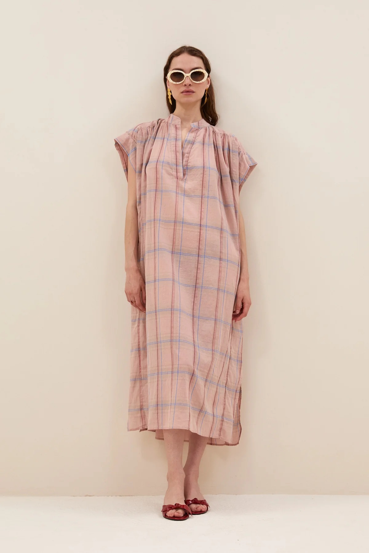 El vestido Bodin se inspira en el estilo europeo relajado, donde los estampados clásicos como los cuadros se reinventan en tonos suaves y femeninos. Su color blush pink aporta delicadeza y frescura, reflejando el ADN de by-bar: prendas versátiles, cómodas y atemporales para el día a día.