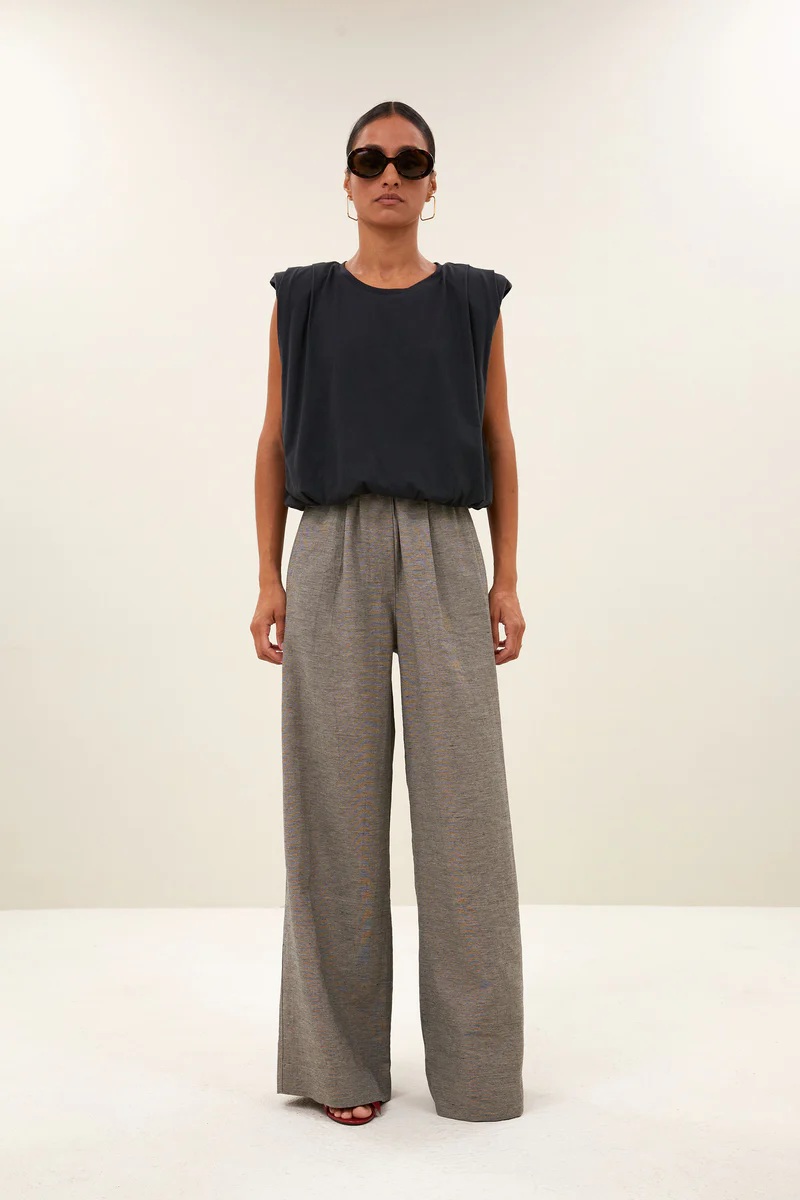 El pantalón Benji Melange se inspira en el minimalismo europeo, donde las siluetas relajadas y los tejidos con textura crean prendas sofisticadas y cómodas. Su tono gris melange aporta elegancia y versatilidad, reflejando el ADN de by-bar: moda femenina, funcional y atemporal.