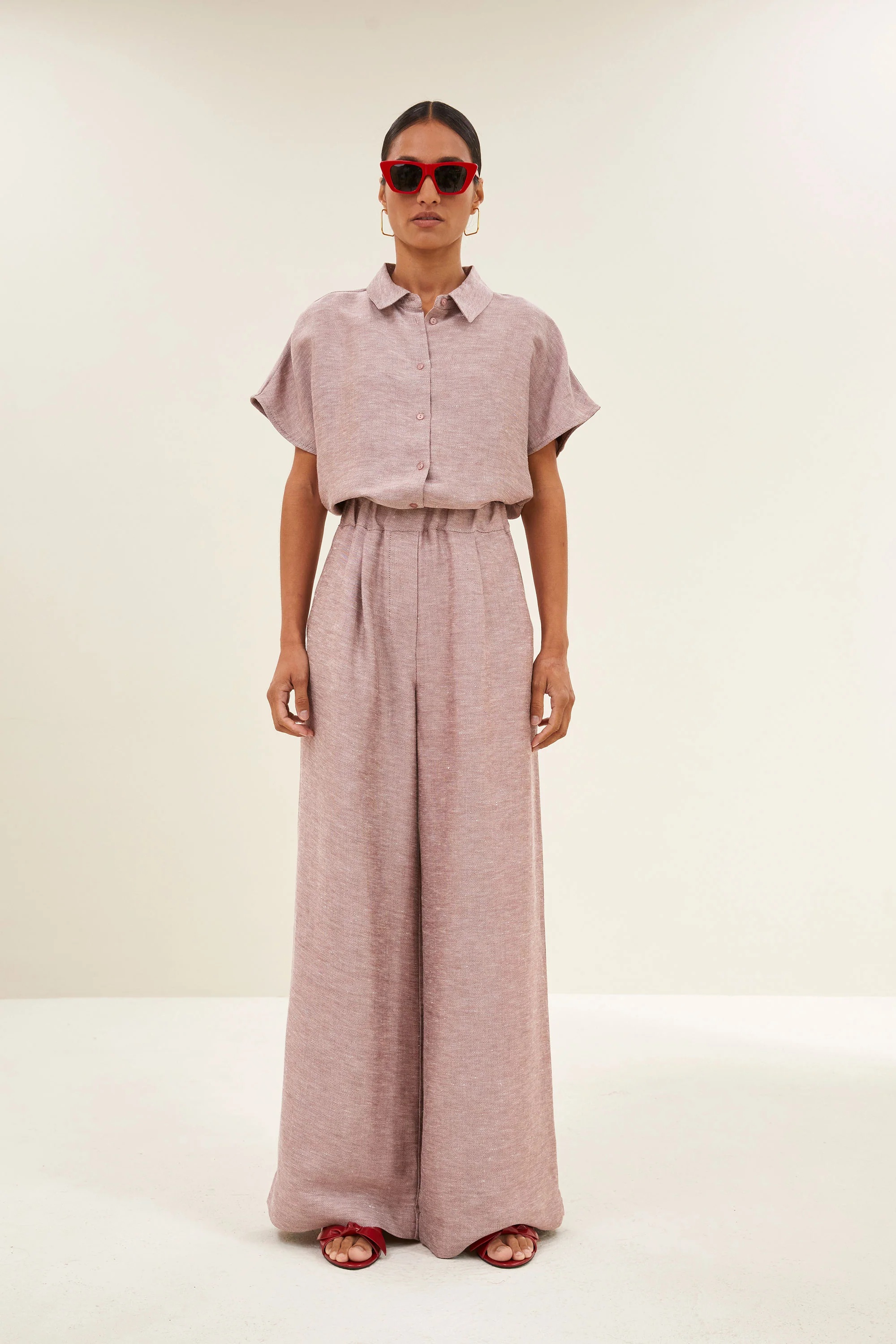 El pantalón rosa Celine Gloss para mujer de by-bar es una prenda elegante y versátil diseñada para acompañarte en looks sofisticados o estilismos relajados del día a día. Confeccionado en una mezcla de viscosa y lino de alta calidad, este pantalón destaca por su caída fluida, su acabado con ligero brillo y su tono mellow rose, que aporta feminidad, luz y un aire contemporáneo.